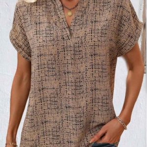 Light Green Patchwork Short Sleeve V Neck Blouse