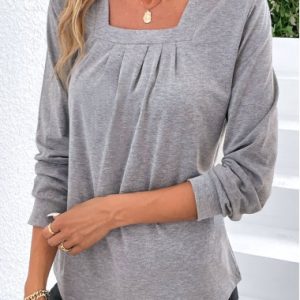 Light Grey Ruched Long Sleeve T Shirt