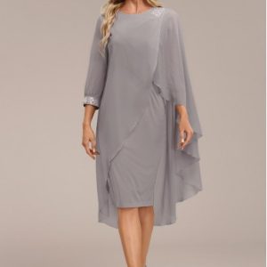 Grey Asymmetry Long Sleeve Zipper Back Dress