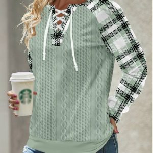 Peacock Blue Patchwork Plaid Long Sleeve Sweatshirt