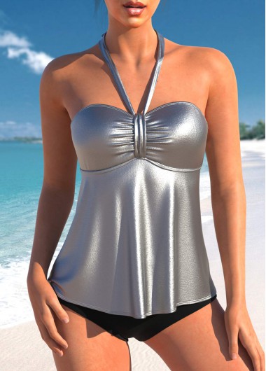 Padded,Wire Free,Removable,Unadjustable,1 X Tankini Top , Without Bottom,Sport,Tribal,Silver,M