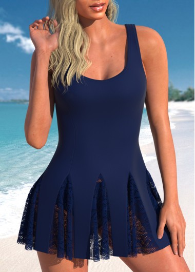 Padded,Wire Free,Removable,Unadjustable,1 X One Piece Swimdress,Sport,Navy,S,XL