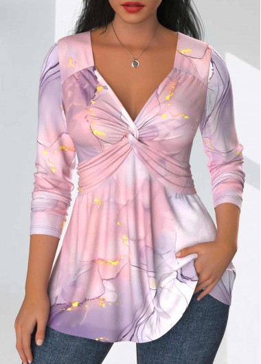 Light Pink Twist Marble Print Long Sleeve T Shirt