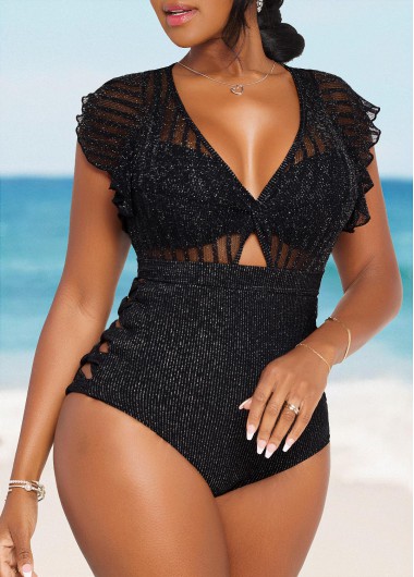 Mesh Patchwork Black One Piece Swimwear
