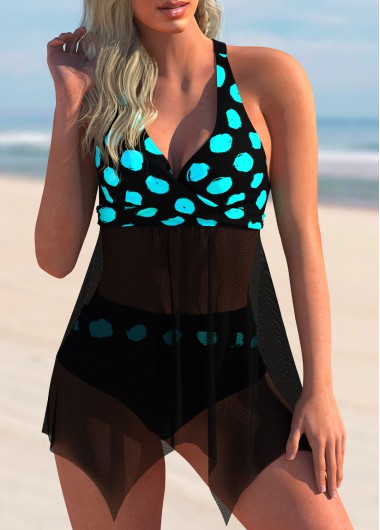Padded,Wire Free,Removable,Adjustable,1 X Swimdress , 1 X Panty,Cyan,S,Hand Wash,Polka Dot,Green,Sport,Fabric Splicing,82% Polyester, 18% Spandex,Summer