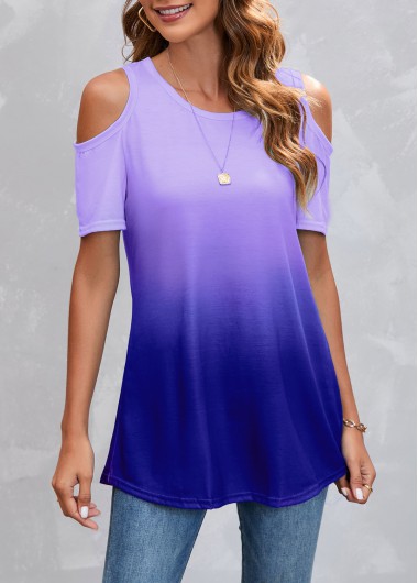Purplish Blue Ombre Cold Shoulder T Shirt
