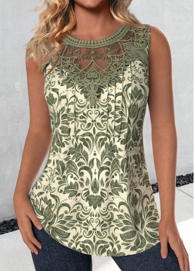 Sage Green Embroidery Tribal Print Sleeveless Tank Top